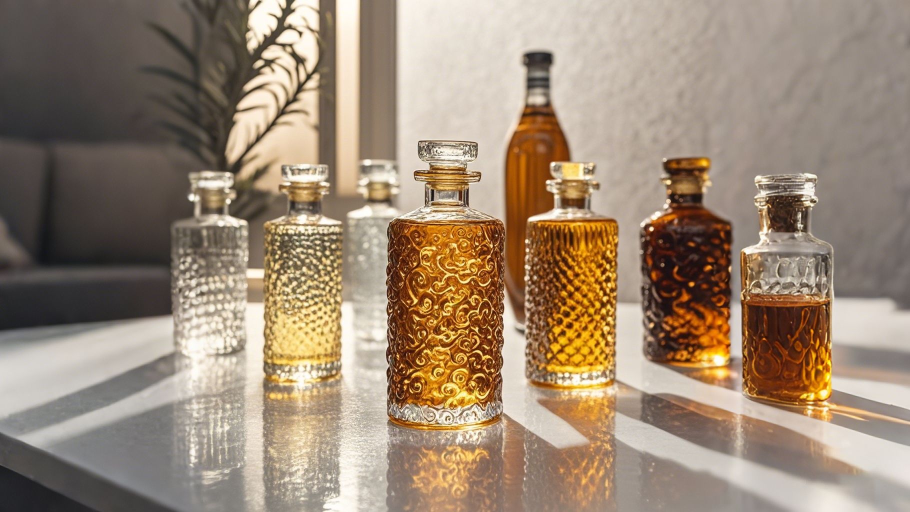 More >>100ml-1750ml clear whisky glass bottles Whisky glass bottle is made of super flint glass; food and beverage safe; 100% recyclable. The glass bottles are crystal transparent with thick bottom. Shape and capacity of whisky glass bottle can be personalized. Logo engraved or printed, painted, sprayed are acceptable.